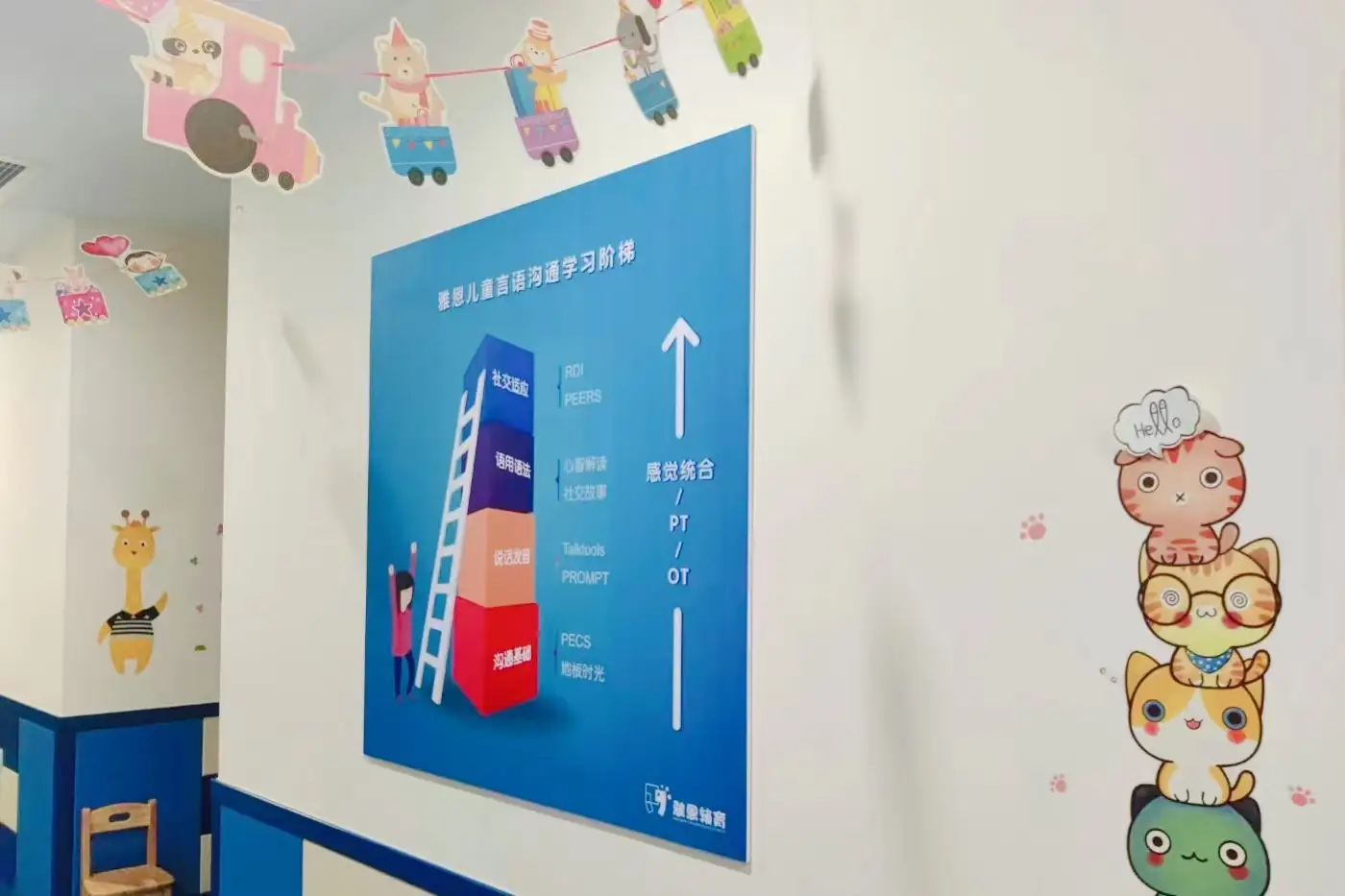 教室(间):100平感统教室一间,语言个训教室8间,口肌教室2间,社交游戏室2间。